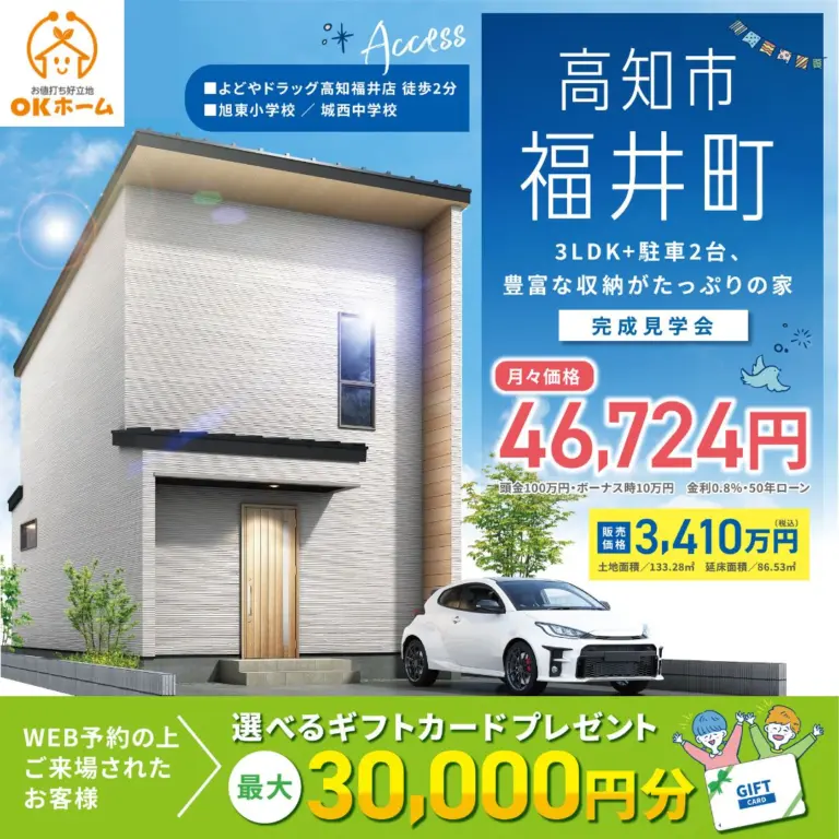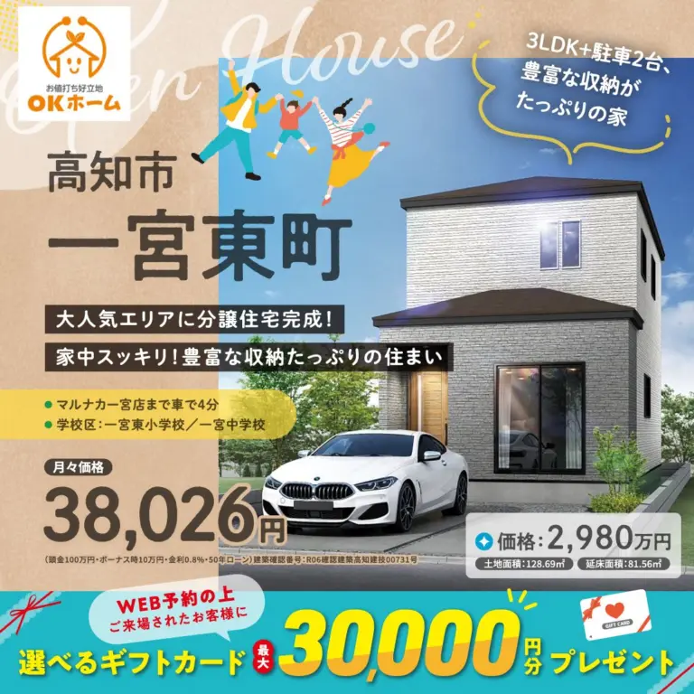 【限定1棟の早い者勝ち🌟】高知市鴨部上町に、待望の新築分譲が誕生! 大人気エリア「高知市 鴨部上町」に注目し、 暮らしやすさを追求したデザイナーズハウスの先行案内がスタートしました! なんとこのお家、限定1棟のお家になり […]